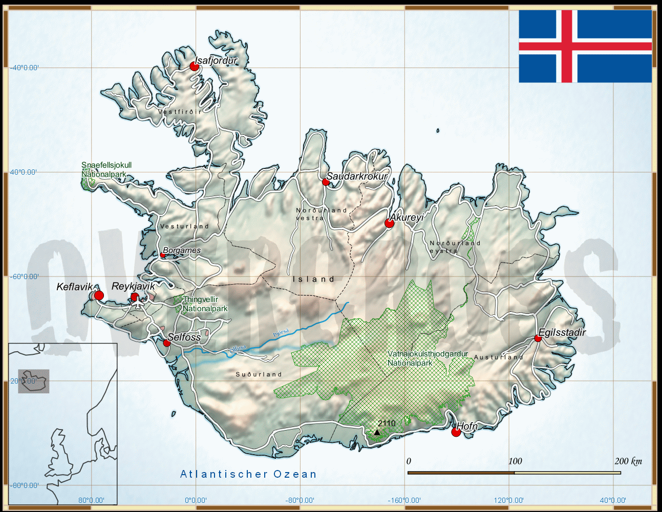 Reisekarte von Island des Reiseveranstalters OVERCROSS